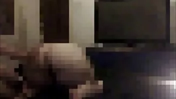 همسر استمناء به عنوان دوست او fucks در شوهرش در كس وكون اتاق نشیمن